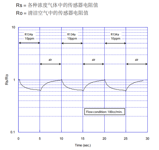 TGS3830不僅對R-134A、R22良好的靈敏度,同時響應速度和恢復速度都非常迅速,并且重復性非常好。